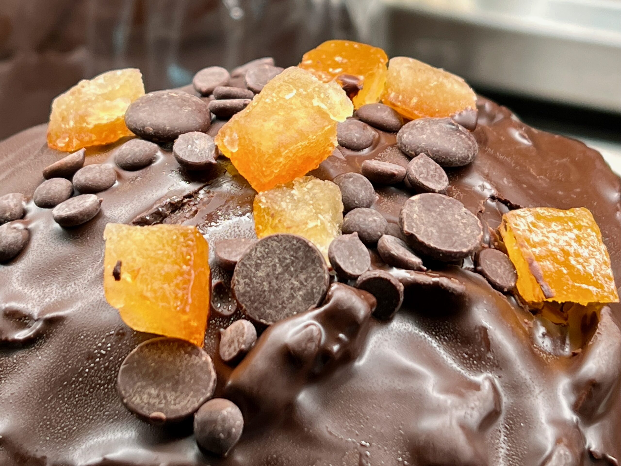 Squisiti canditi di arancia di Sicilia e cioccolato fondente belga Callebaut con burro di latteria conferiscono all’impasto una struttura e un sapore unico.