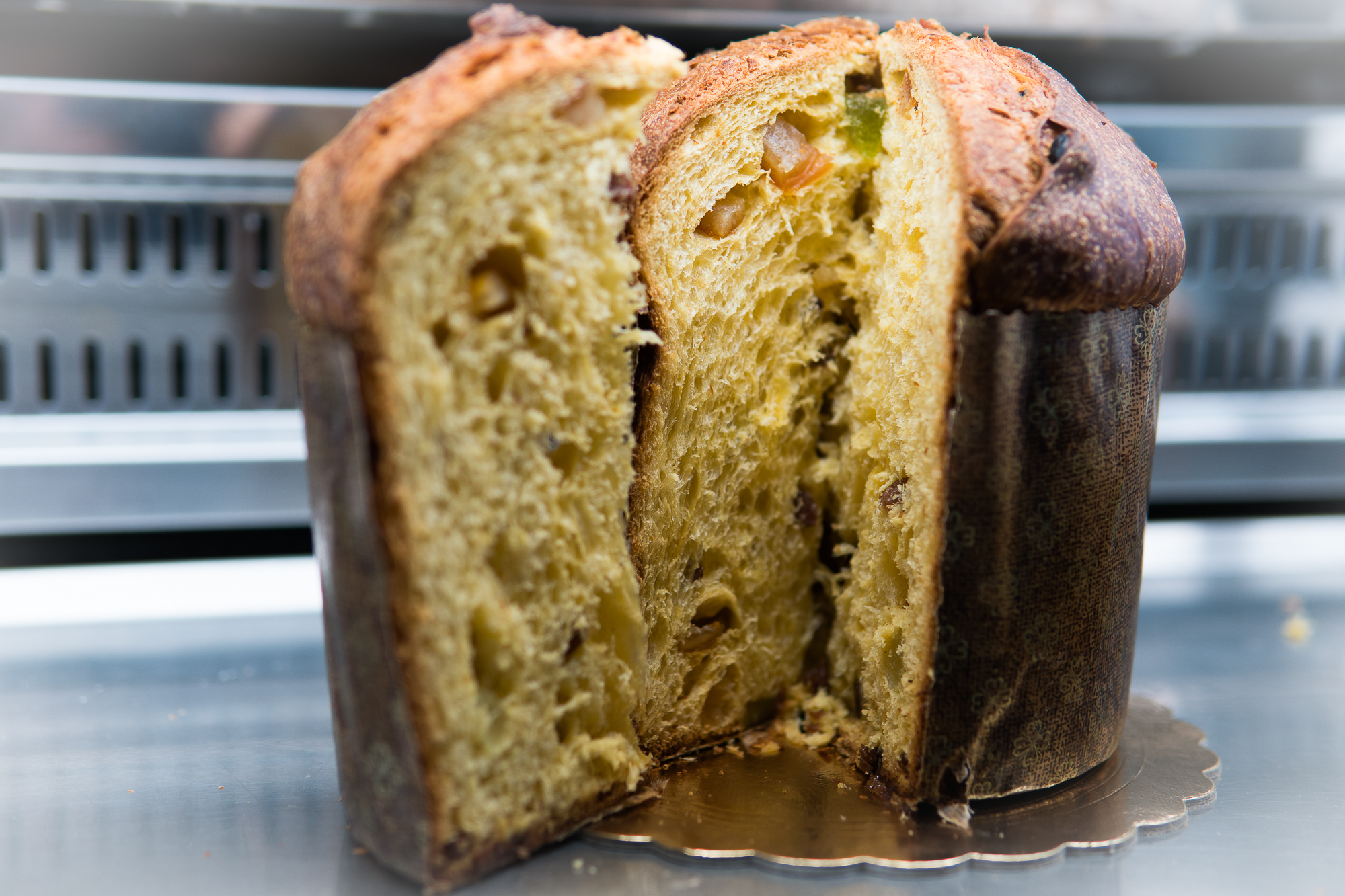 - Ingredienti: farina di grano tenero tipo 00, burro, tuorli d’uovo, zucchero, miele, canditi di arancia e cedro, uvetta, lievito madre, lievito di birra, sale, vaniglia.